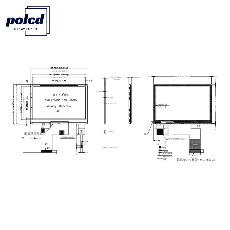 Αυτή η οθόνη αφής LCD είναι μια έγχρωμη οθόνη υγρών κρυστάλλων (LCD) τρανζίστορ λεπτής μεμβράνης (TFT) που χρησιμοποιεί άμορφο πυρίτιο TFT ως συσκευή μεταγωγής.Εάν το προϊόν σας απαιτεί μέγεθος 4,3 ιντσών, τότε η LCD μας είναι ακριβώς αυτό που χρειάζεστε.Βελτιώστε τον σχεδιασμό του προϊόντος σας προσθέτοντας το προϊόν ανάλυσης 800 * 480.Το τμήμα QC μέτρησε ότι η φωτεινότητα είναι 280 nits υπό κανονική λειτουργία.